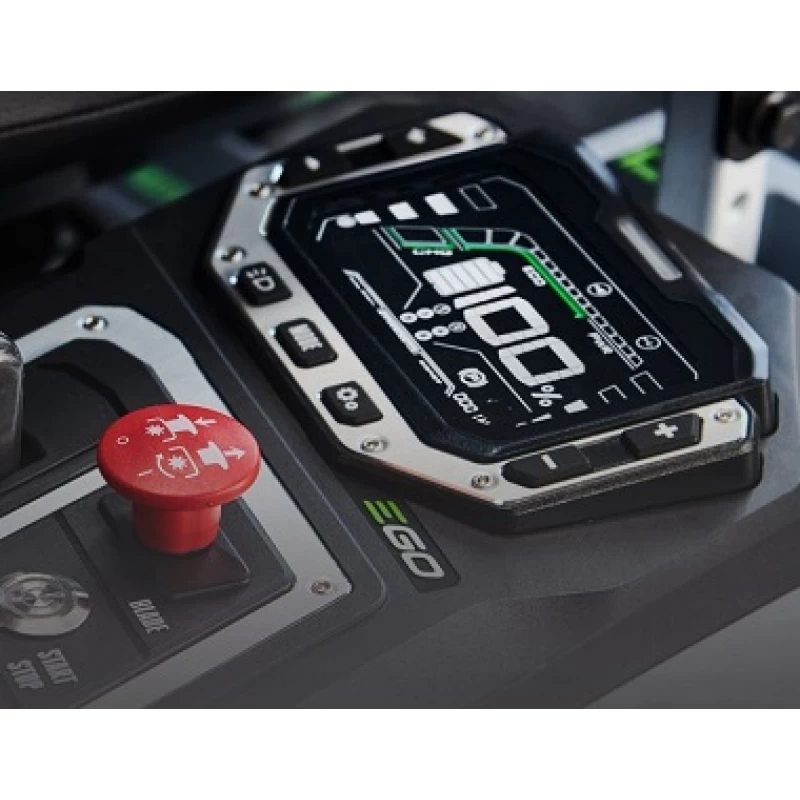 GO Z6 Zero-turn zitmaaier. Deze zitmaaier wordt aangedreven door de standaard EGO’s 56V accu’s. De Z6 biedt is standaard uitgerust met snelste multipoort lader op de markt die ruimte biedt aan 6 accu’s. Het maakt niet uit welke combinatie van accu’s u in de maaier stopt, zolang deze tezamen minimaal 15 Ah zijn. De Z6 zero turn zitmaaier is ongekend sterk en heeft een vermogen gelijk aan een brandstofmotor van 22pk. Omdat de Z6 volledig wordt aangedreven op accu’s, veroorzaakt deze geen schadelijke uitstoot. Met de Z6 zero turn zitmaaier kan een oppervlakte tot 10.000 m2 worden gemaait met 6 accu’s van 12Ah. Met 4 krachtige borstelloze motoren biedt de Z6 vergelijkbare of zelfs betere prestaties als een brandstof aangedreven variant. De zitmaaier behaalt een topsnelheid van 12 km/uur en maait tot 10.000 m2. De Z6 zitmaaier beschikt over een intuïtief lcd-scherm waarmee de snelheid, de maaimodus en maaisnelheid geregeld kunnen worden. Ook geeft het scherm exact aan hoeveel stroom de accu’s nog bevatten. De Z6 zero turn kan ingesteld worden in de standaard-modus voor dagelijkse taken, de Control-modus die perfect is voor nieuwe zero-turn gebruikers en de ondergrond beschermt en de sport-modus voor precies maaiwerk en scherpe bochten en hoeken. De zitmaaier kan worden ingesteld op 10 maaihoogtes tussen 2,5 en 10 cm. Met de ergonomische handgrepen kunt u de maai-instellingen gemakkelijk aanpassen. U kunt mulchen, het maaisel in de zak opvangen of zijwaarts uitwerpen tijdens het maaien, zodat u niet alleen de gewenste maairesultaten behaalt maar het maaisel verwerkt zoals u wilt. (Opvangzak apart verkocht.) Ook is de Z6 voorzien van 32 high-intensity ledlampen voor extra verlichting van uw maaioppervlak wanneer de omstandigheden niet ideaal zijn, een handige bekerhouder en een opbergvak en plekje voor uw mobiele telefoon die u ook kunt laden tijdens het maaien dankzij de USB-poort. Met de 1.600W snellader, die standaard wordt meegeleverd, heeft u beschikking over de snelste acculader in de sector. Deze acculader heeft tot wel 4 maal snellere laadtijden dan concurrerende modellen. Inclusief 1.600W snellader en mulchplug. Deze elektrische zitmaaier wordt geleverd met drie 12 Ah accu’s.