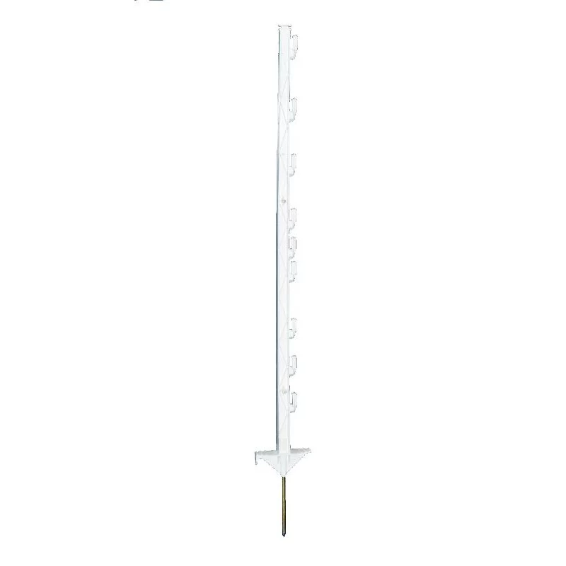 Zeer stevige en duurzame kunststofpaal met 7 draadhouders en extra versterkte voet. Geschikt voor alle soorten kunststofdraad en lint tot 40mm. Het unieke ontwerp van de afstand tussen de draadhouders maakt de paal geschikt voor bijna alle diersoorten. Maximale afrasteringshoogte 0,85m.