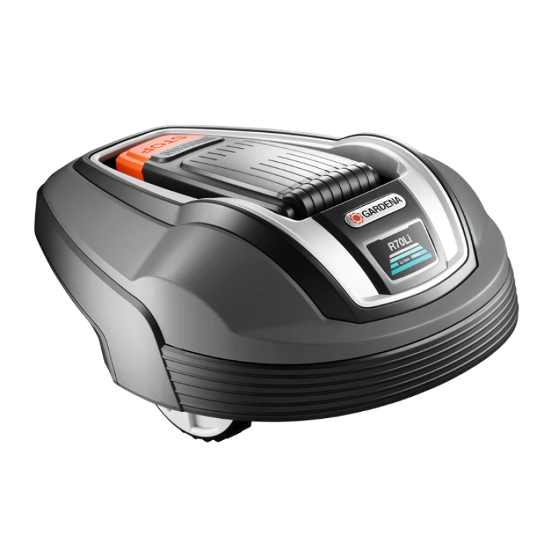 De innovatieve GARDENA robotmaaier R70Li maait het gazon zelfstandig voor u, terwijl u geniet van uw vrije tijd of andere dingen doet. De R70Li maait met een willekeurig bewegingspatroon gazons tot maximaal 700 m² – effectief, betrouwbaar en zonder strepen of spoorvorming. Het resultaat: Altijd een uitstekend verzorgd gazon! De robotmaaier rijdt zelf naar het oplaadstation voor nieuwe energie. Een grensdraad bakent het maaiterrein af, waardoor de maaier altijd binnen het maaigebied blijft. De vlijmscherpe mesjes snijden regelmatig kleine stukjes van het gras, dat als een natuurlijke meststof (mulchprincipe) op het gazon achterblijft. Een draaischotel biedt een betere bescherming van de messen in moeilijke omstandigheden. Met een draaiknop kan de maaihoogte van 2 tot 5 cm eenvoudig ingesteld worden. Met een gewicht van acht kilo kan de robotmaaier binnen het maaigebied een hellingspercentage van maximaal 25% aan. Het programmeren gaat ongelooflijk eenvoudig en snel. Verschillende maaimomenten (tijden en dagen) kunnen ingesteld worden op het grote toetsenbord van de display. Duidelijke, intuïtieve bediening en eenvoudig te volgen menunavigatie. Na het programmeren werkt de R70Li geheel zelfstandig op de ingestelde tijden, zelfs wanneer het regent. De krachtige en makkelijk te onderhouden Lithium-Ion 18 V / 1,6 Ah accu zorgt voor een betrouwbare en energiezuinige werking. De R70Li werkt stil en zonder uitstoot. De hypergevoelige botssensoren en de grensdraad helpen de R70Li om obstakels te herkenen en er langs te rijden. De hef- en overhellingssensoren, maar ook de grote ruimte tussen de behuizing en de maaimessen garanderen extra veiligheid voor mens en dier. Als de maaier opgetild wordt, stoppen de messen onmiddellijk om verwondingen te voorkomen. De robotmaaier kan op elk moment gestopt worden door de grote, goed toegankelijke stopknop. De R70Li is flexibel en daardoor zeer geschikt voor nagenoeg ieder type tuin. Te gebruiken voor bijvoorbeeld de voor- en achtertuin. De robotmaaier wordt compleet geleverd met een laadstation, stroomkabel, grensdraad, haringen, reservemessen, koppelstukken en aansluitklemmen.