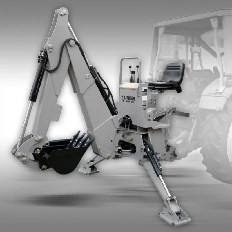 De graafmachine Jansen BHM-225 wordt in de driepunts-hefinrichting van uw tractor opgehangen en rechtstreeks door de aftakas (bij levering inbegrepen) aangedreven. Hij heeft een eigen hydraulisch systeem, zodat de tractor enkel voeding vanuit de PTO van uw tractor nodig heeft. De BHM-225 wordt met een 400 mm graafbak geleverd die 180 graden van links naar rechts kan draaien – waardoor je een grote actieradius hebt!