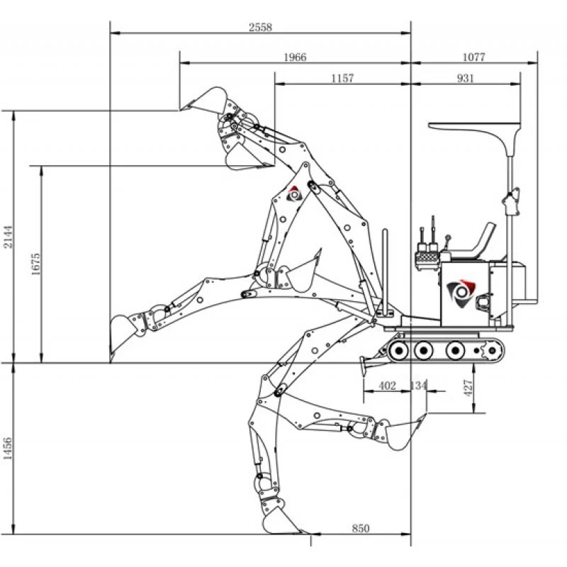 Deze minigraafmachine MB-1500K is een compacte en multifunctionele machine. Het is een kleine, krachtige en veelzijdige machine. Dankzij een breedte van slechts 825 mm krijgt u met deze machine ook toegang tot moeilijk bereikbare locaties. Het is met een 13,5 PK sterke benzinemotor van Briggs & Stratton en een elektromotor (400V, 2,2 kW) uitgerust die op zijn beurt het krachtige hydraulische systeem aandrijft. Ideaal dus om binnen te werken.Wij bieden hier een complete set aan! Bij de levering inbegrepen zijn de 20cm, 30cm en 60cm brede graafbakken, een schoffelploeg voor het losmaken van de bodem en een grijparm voor het verplaatsen en tillen van bijvoorbeeld stenen of boomstammen. Erg praktisch is het snelle wisselsysteem die het mogelijk maakt de verschillende accessoires binnen enkele seconden te verwisselen.Nieuw bij onze graafmachine is de ingebouwde “Knickmatik”, waarmee de graafarm zijwaarts kan worden gezwenkt.(Zwenkbereik graafarm: 100°)Het tandwiel en draaigewricht maken een draaicirkel van 360° mogelijk. Deze MB-1500K heeft daarnaast nog een besturingseenheid op de graafarm. Daardoor kunt u uw bereik vergroten en bijvoorbeeld een boormachine op deze graafmachine bedienen.Met een graafdiepte van 145 cm en een uitwerphoogte van 168 cm is deze graafmachine de perfecte begeleider, of het nou om particulier of commercieel gebruik gaat. De minimale bodemdruk en de veelzijdigheid zorgen ervoor dat de ondergrond niet verwoest wordt bij het gebruik van deze graafmachine, dit is vooral in tuinen erg belangrijk.Een inklapbare veiligheidsbeugel met geïntegreerd regendak, het robuuste, hydraulisch verstelbaar dozerblad en de intuïtieve, eenvoudige bediening dragen allemaal bij aan de hoeveelheid aan mogelijkheden van deze graafmachine.Geleverd wordt de minigraafmachine MB-1500K met een kruisbesturing. Zoals op de foto’s te zien, zijn er 2 bedieningshendels ingebouwd voor de bediening van de graafarm en de graafbak en 2 bedieningshendels voor de kettingaandrijving en het dozerblad. Het toewijzen van de functies kan men door de diverse aansluitwijzen van de hydraulische leidingen bepalen.Technische gegevens:  Motor: 13,5 PK Briggs & Stratton, 420cc, normaal loodvrij, met elektrostarter  Elektromotor: 400V, 2,2 kW  Zwenkhoek: 360 graden  Max. werkhoogte: 2144 mm  Uitwerphoogte: max. 1675 mm  Graafdiepte: max. 1456 mm  Reikwijdte: max. 2550 mm  Trekvermogen: 0,9 t  Scheurkracht: ca. 550 kg  Draagkracht (graafarm volledig uitgeschoven): ca. 300 kg (dozerblad beneden)  Draagkracht (graafarm volledig uitgeschoven): ca. 125 kg (dozerblad boven)  Gewicht: ca. 700 kg  Gewicht bij verzenden: ca. 780 kg  Breedte: 825 mmOverige:  “Knickmatic”: De arm kan zijwaarts worden gedraaid  Set: incl. 20cm, 30cm & 60cm graafbakken, een-tand ploeg en grijper  Elektrostarter: 12 Volt  Bedrijfs-urenteller  Capaciteit benzinetank: 6,5 liter  Capaciteit olietank: ca. 23 liter (HLP-46)  Zwenkhoek: 360°  Hydraulische oliestroom: ca. 17 liter per minuut  Werkdruk: ca. 160 barBijzonderheden:  Extra hydraulische besturingsschakeling op graafarm  Hoge kwaliteit en robuuste verwerking  Eenvoudige bediening  Transport op een aanhanger of in bestelbus mogelijk  Past door conventionele deuren (825 mm)  Inclusief diverse accessoires  Uitgerust met snelwisselaar  Snelwisselaar kan gedraaid worden, zodat de graafbakken andersom gemonteerd kunnen worden  Krachtige hydraulische pompeenheid  Hydraulisch verstelbaar dozerblad  Hoge graaf- en scheurkracht  Draagkracht van ca. 125 tot 300 kg (Afhankelijk van de positie van de graafarm)  Alle smeerpunten zijn makkelijk toegankelijkAlgemene info:De machine wordt op een stalen palet geleverd. Voor de eindmontage zou u ca. een half uur in moeten plannen.Voor de eerste ingebruikname van de machine heeft u ca. 5 liter hydrauliekolie nodig om deze volledig te vullen. Wij raden de HLP46 aan, deze is overal verkrijgbaar. Daarnaast heeft u nog ongeveer 1 liter motorolie nodig, en hier raden wij een 10W40 of een 15W40 aan.