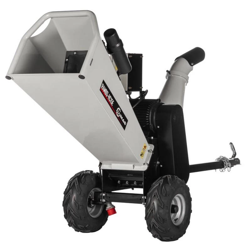De hakselaar kan gebruikt worden voor snoeiafval van struiken tot bomen. De machine kan op eigen terrein eenvoudig verplaatst worden door de grote luchtbanden en trekhaak aansluiting (alleen transport op eigen terrein is toegestaan). Deze trekhaak aansluiting kunt u eenvoudig verwijderen. De inworptrechter is scharnierbaar waardoor u de trommel zeer eenvoudig kunt reinigen en de uitworptrechter is verstelbaar.