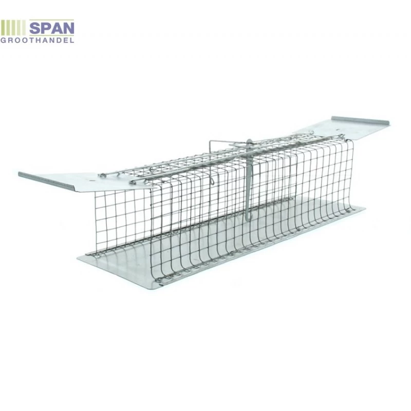 Rattenvangkooi, gemaakt van gegalvaniseerd gaas. Met 2 ingangen. 34x10x9cm.