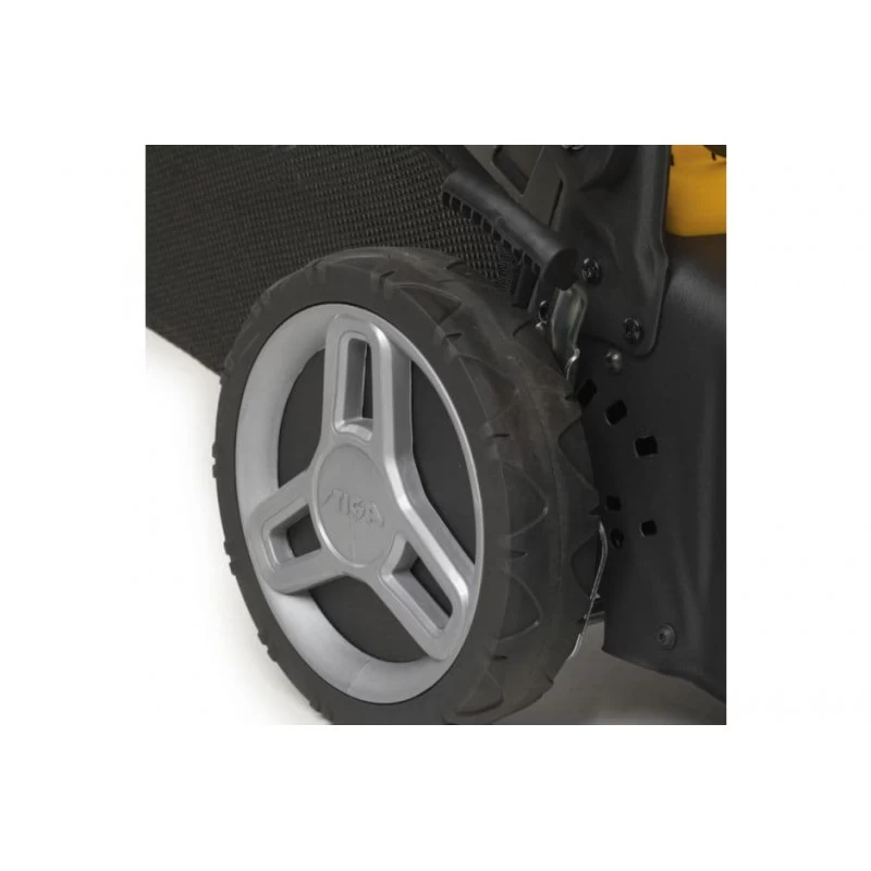 De elektrische STIGA Combi 48 E-duwmaaier is lichtgewicht en gebruiksvriendelijk. De maaier wordt aangedreven door een elektrische motor van 1600 W die stil en efficiënt is. Dankzij de maaibreedte van 46 cm en een stalen frame is de Combi 48 E een betrouwbare en robuuste machine. De maaihoogte kan centraal worden ingesteld in een van vijf verschillende standen tussen 27 en 80 mm. Deze maaier heeft achterwielen van 240 mm zodat u gemakkelijker en comfortabeler kunt maaien op oneffen terrein. De Combi 48 E heeft drie verschillende maaifuncties: opvangen in de meegeleverde opvangbak, achteruitworp of mulchen, waarbij het grasafval wordt versnipperd en als meststof over de grond wordt verspreid. De textiel opvangzak van 60 liter heeft een meter om aan te geven wanneer de zak vol is. Gebruikerscomfort is gegarandeerd dankzij de verstelbare stuurhendel, die eenvoudig kan worden ingeklapt als u het product wilt opbergen.