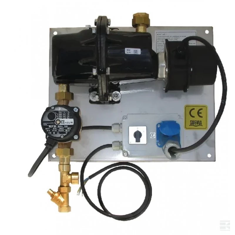 De verwarmapparaat is ontwikkeld voor plaatsing in buiten geklimatiseerde stallen voor runderen, paarden, varkens of schapen. Om het water vorstvrij te houden in geïsoleerde ringleidingen (R 1/2” of R 3/4″) met een maximale lengte van 200 meter. Met thermostaat en circulatiepomp, aansluitklaar gemonteerd op de grondplaat, met overdrukventiel, ontluchtingsventiel, terugslagklep en terugslagklep (30 mA aardlekschakelaar vereist)